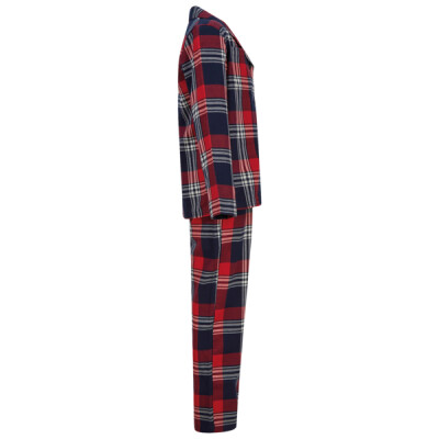 Twill weave. Lounge shirt with notched collar. Pearlised button closure. Left chest pocket with top stitch detail. Twin needle cuffs and hem. Lounge pants with elasticated waistband. Open leg ends. Tear out label.