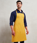 Easy care fabric. Self fabric neck tie with sliding, adjustable buckle. Self fabric 90cm ties. Industrial laundry 85°C. Domestic wash 60°C.